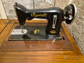 Macchina da cucire d'epoca anni '50 marca VIGORELLI con motore elettrico e lampada. Funzionante ed il buone condizioni.