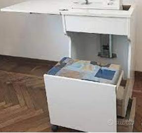 Vendo macchina Vigorelli perfettamente funzionante, al momento alloggiata nel mobile che si vede in foto con sedile cassettiera su ruote da poco acquistato. È compresa, inoltre , la custodia qualora si volesse utilizzare la macchina senza mobile ( come è visibile in foto)