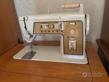 Vendo macchina da cucire vintage Singer modello 700, originale anni ’60/’70, completa di mobiletto richiudibile in legno.