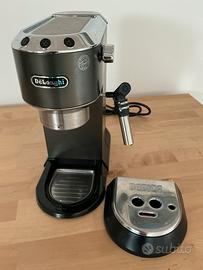 Vendo macchina del caffè DeLonghi Dedica Style EC685 BLACK La macchina è in ottime condizioni tenuta sempre pulita e decalcificata una volta all’anno. Inclusi nella confezione (originale) il porta filtri, i filtri sia per caffè in polvere sia per cialde E.S.E., il dosatore. La macchina per caffè espresso De’Longhi Dedica Style EC 685 ti permette di preparare espresso, cappuccino, caffellatte e latte macchiato. Con potenza di 1.350 Watt e pressione di 15 bar, offre funzioni avanzate e design elegante. Caratteristiche principali Prepara espresso, cappuccino, caffellatte e latte macchiato Potenza di 1.350 Watt e pressione di 15 bar Capacità per 2 tazze e funzione 2 tazze Griglia raccogligoccia regolabile e riscaldamento rapido Preparazione Versatile La macchina Dedica Style EC 685 permette di preparare una varietà di bevande, da espresso a cappuccino, con facilità e risultati professionali. Potenza e Pressione Con 1.350 Watt di potenza e una pressione di 15 bar, questa macchina garantisce un’estrazione ottimale del caffè per un gusto ricco e intenso. Design Elegante e Funzionale Il design elegante e compatto della De’Longhi Dedica Style EC 685 si adatta a qualsiasi cucina, offrendo anche funzionalità avanzate come il riscaldamento rapido e la regolazione della griglia raccogligoccia.