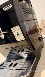 Vendo fantastica macchina da caffè automatica De'Longhi Magnifica in finitura nera lucida. Macchina "chicco-tazza" che macina i grani al momento per un espresso fresco e cremoso. Dispone anche di un cappuccinatore manuale per preparare ottime schiume di latte. Caratteristiche: • Macina caffè integrato con 13 livelli di macinatura regolabili. • Pannello di controllo intuitivo con icone per espresso singolo/doppio e caffè lungo. • Pannarello per schiumare il latte (Cappuccino/Hot Milk). • Possibilità di regolare l'intensità del caffè tramite la manopola centrale. • Funziona sia con caffè in grani che con caffè macinato. • Serbatoio dell'acqua e vaschetta raccogligocce rimovibili per una facile pulizia. • Cicli automatici di risciacquo e decalcificazione. La macchina è in buone condizioni e perfettamente funzionante. Sono presenti solo normali segni di usura, come lievi graffi sulla piastra raccogligocce in metallo, visibili in foto. Possibilità di ritiro a mano, ma anche spedizione.