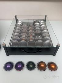 - Cassetto porta capsule in vetro e metallo (con all’interno diverse capsule già incluse)