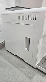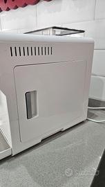 Power Matic-ccino 6000 Bianca Serie S Caffettiera superautomatica Macchina del caffè superautomatica come nuova poco usata Dispone di un sistema di riscaldamento rapido via thermoblock, 19 bar, ModoAuto per 1 e 2 caffè e vaporizzatore orientabile. La macchina del caffè superutomatica compatta prepara caffè espresso e americano in grani appena macinati premendo un tasto grazie al sistema Plug&Play. La sua potente pompa di pressione con tecnologia ForceAroma da 19 bar ottiene la migliore crema e il massimo aroma in ogni caffè. Sistema di riscaldamento rapido mediante Thermoblock che garantisce un caffè perfetto in soli pochi secondi. Si adatta a tutti i gusti, puoi personalizzare e memorizzare facilmente la quantità, l’intensità e la temperatura del caffè. Grande display LCD altamente intuitivo. Il serbatoio da 250 g di caffè a chicchi ermetico permette di mantenere l’aroma originale. È dotato di un macinacaffè conico integrato con livelli di macinatura regolabili. Consente di preparare caffè con caffè macinato grazie all’entrata indipendente. Ideale per preparare rapidamente un caffè decaffeinato in qualunque momento. Include un vaporizzatore per creare consistenza al latte a tuo gusto ed ottenere la migliore spuma per il tuo caffè. Emette, inoltre, acqua calda per infusioni. Sistema AlwaysClean di pulizia per mantenere sempre impeccabile la tua macchina del caffè. Serbatoio d’acqua estraibile con 1,7 litri di capacità. Sistema di risparmio energetico con spegnimento automatico e stand-by. Uscita del caffè regolabile in altezza, da 10,5 cm a 15 cm che si adatta sia alle tazzine di caffè che alle tazze per la colazione. Il processore di fondi e il deposito di fondi sono facilmente estraibili per una manutenzione adeguata. Consente di preparare ogni tipo di caffè con una potenza massima di 1350 W. Vassoio anti-gocciolamento estraibile per rendere facile la pulizia e sistema che indica il livello dell’acqua.