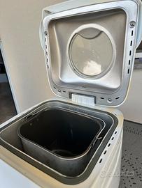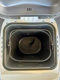 La macchina è in ottime condizioni e perfettamente funzionante. È completa di tutti gli accessori originali: bicchiere dosatore, cucchiaio doppio e gancio metallico per l’estrazione della pala impastatrice.