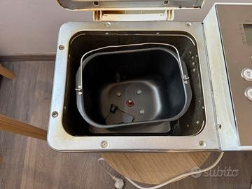 Macchina del pane Kenwood mod. BM350. Corpo esterno acciaio inox, estello antiaderente, completa di ricettario e di cucchiaio dosatore. Perfettamente funzionante. Qualche segno di usura sulle parti in plastica