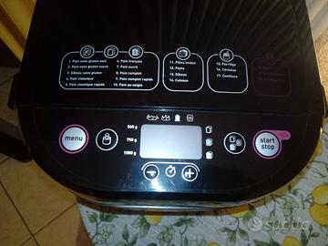 model: SERIE B13 MOULINEX PAN DELICES 20 PROGRAMMI Pain & Délices è la macchina per il pane Moulinex più completa e versatile che ci sia. Ti offre possibilità illimitate! Ti consente di preparare in casa non solo il pane, ma anche pasta per la pizza, pasta fresca, marmellate, porridge e cereali ed addirittura preparazioni casearie! I suoi 20 programmi comprendono anche programmi senza glutine per un'ampia varietà di pane e dolci molto sani. Scoprili con lo speciale ricettario! Oggi puoi preparare anche prodotti caseari per la tua famiglia, grazie ai 3 programmi specifici: dallo yogurt e lo yogurt da bere ai fiocchi di latte, + il contenitore per lo yogurt da 1L. Per chi consuma poco o molto pane, per chi vive da solo o ha una grande famiglia, è possibile scegliere tra 3 formati di pane, da 500 g fino ad 1 kg. Leggera e compatta, la macchina per il pane Pain & Délices ha un aspetto moderno ed estremamente estetico, con una finitura metallica perfetta nella tua cucina. Infine, puoi gustare in ogni momento pane caldo appena cotto, grazie al timer 15 ore: che cosa c'è di meglio che sentire al risveglio il profumo del pane appena sfornato? Colore del prodotto: Nero, Acciaio inox Quantità programmi automatici: 20 Programmi per produzione di pane e pasta: Pane senza glutine Tipologia display: LCD Tipo di display: LCD Livelli di doratura della crosta variabili: Scuro, Chiaro, Medio Funzione mantieni al caldo: Sì Finestra visuale: No Tipo di controllo: Pulsanti Display incorporato: Sì Facile da pulire: Sì Segnale di aggiunta ingredienti: Sì Numero di programmi: 20 Controllo di doratura della crosta variabile: Sì Partenza ritardata: 15 Massimo peso del pane: 1000 peso minimo pane: 500 Preparazione confettura: Sì Piedini antiscivolo: Sì Partenza differita: Sì Programmi per la prepazione di yogurt: Yogurt Livelli doratura: 3 Rivestitura anti-aderente: Sì il libretto d' istruzioni purtroppo è stato smarrito, consiglio di scaricarlo direttamente dal sito ufficiale