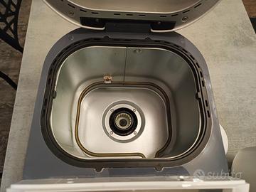 Macchina del pane acquistata marzo 2025, usata ma in condizioni pari al nuovo. Ottima per chi vuole un pane fresco pronto in poche ore, basta inserire gli ingredienti e la macchina di arrangia da sola. Rispetto a molte altre in commercio, ha due direttori automatici, uno per il lievito e l'altro per chi vuole aggiungere semi di sesamo, gocce di cioccolato e cereali. Io la uso anche per prepararmi solo l'impasto per poi dividerlo e farmi i panini da mettere in forno. Fa anche marmellata e ricotta con l'apposito accessorio in dotazione. Piccolo segno di usura nella pala dentata che non ne compromette il funzionamento. Vendo per passaggio a modello più grande. Solo consegna a mano zona Chirignago, Mestre, Favaro V.to. Contatto preferibile via whatsapp.