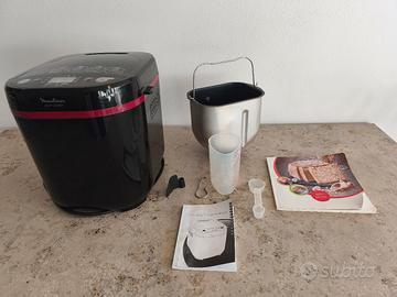Macchina per pane della Moulinex completa di tutti gli accessori, con libretto delle istruzioni e delle ricette.