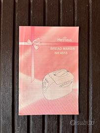 Macchina del pane che impasta e cuoce completamente in automatico. Il contenitore è di circa 2 L e riesce ad ottenere una pagnotta da 1 Kg. Potenza 600 Watt. Programmabile sino a 13 ore ha tre gradi cottura. Ha 12 programmi di cottura / 39 possibili impostazioni. Manuale incluso ( in inglese). Usata poche volte