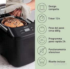 Panasonic SD-PN100KXE Mini Macchina del Pane, 4 Programmi Senza Glutine, Design Compatto, 18 Programmi Automatici, Schermo LCD, Pane da 200 o 400 g, Nera