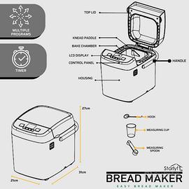 Macchina del Pane STARLYF Bread Maker, 14 programmi in totale, Display LCD, 500 W, incluso Manuale d'istruzioni e Ricette Speciali.