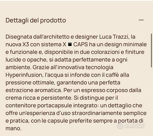 Vendo macchina di caffe Illy X3 disegnata da Luca Trazzi, nuova di pacca in quanto l’ho ricevuto come regalo ma ho una macchina professionale acquistata giusto qualche mese fa.
