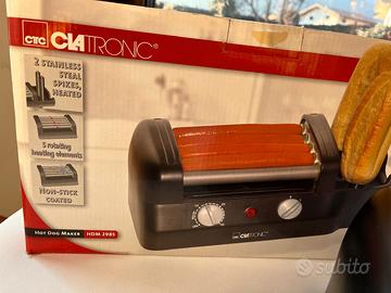 per 4 salsicce/wurtel, 5 barre rotative antiaderenti per riscaldare o cuocere, 2 punte in acciao inox verticali per riscaldare panini, interruttore on/off, timer 30 min con segnale acustico di fine cottura, silenzioso, piatto per scolare grasso, 220 v, 50 Hz, 300 w - ancora imballo originale