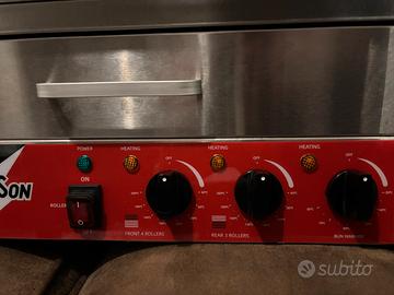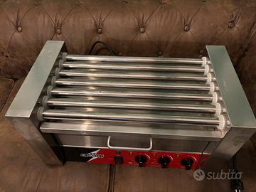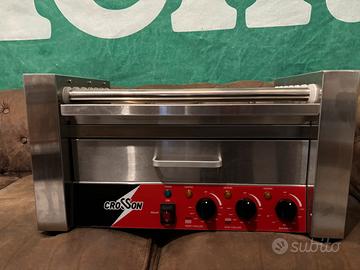 Vendo questa macchina da Hot Dog Crosson usata per un evento e riposta nella scatola. Ha 4 ore di vita!!! Funziona perfettamete; tutta in inox. Rulli rotanti riscaldanti, cassetto per panini riscaldante ognuno con il suo relativo comando di temperatura. Perfetta praticamente nuova con tutte le istruzione e scatola originale.