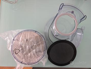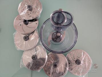 Sono presenti inoltre due accessori opzionali, il Food processor con 6 dischi per sminuzzare, affettare, tagliare a julienne etc. e il Frullatore.