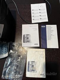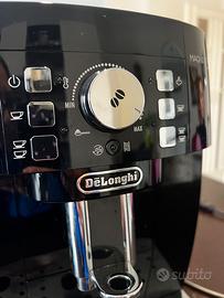 Macchina macina caffè, modello magnifica S della marca deLonghi, utilizzata ma ancora in ottime condizioni. Permette di regolare la macinatura dei chicchi di caffè ed erogare due caffè contemporaneamente. Serbatoio dell’acqua in cui si può installare un filtro. Vaschetta raccogli acqua facile da pulire. Sono incluse le istruzioni. Presa elettrica italiana.
