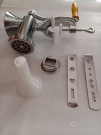 macchina manuale per biscotti e insaccati con accessori tritacarne + inbuto salsiccia + n. 2 serrande per otto formati di biscotti .