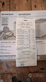 macchina pane silvercrest usata 5 volte quindi vendo per inutilizzo, in perfette condizioni in garanzia fino ad agosto 2026,senza scatole