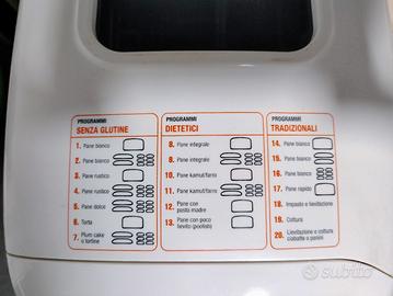 macchina per prepare pane e dolci con e senza glutine, completa di accessori e libro ricette pari al nuovo