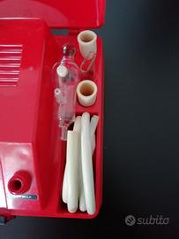 Macchina per aerosol anni 80 con tutti gli accessori. Da molti anni non viene accesa. Ci sono maschere, ampolle, cavi. Come da foto, lo specchio col tempo si è rovinato.