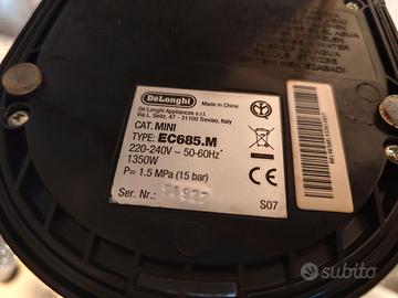 Vendo come da titolo machina da Caffè DeLonghi DEDICA per passaggio ad altra tipologia di macchina. De'Longhi Dedica EC685.M Macchina Caffè Espresso Manuale, Caffè Polvere o Cialde E.S.E., Montalatte classico per Cappuccini, Pannello di controllo con pulsanti, Spegnimento Automatico, Serbatoio 1L, Filtro Singolo/Doppio, Colore Argento Compatta nelle dimensioni, 15 cm, tempo di riscaldamento ridotto, 40 secondi, stand-by e spegnimento automatico, Flow Stop per personalizzare la lunghezza del proprio caffè Informazioni su questo articolo •Macchina del caffè espresso a pompa DEDICA: interamente in metallo e compatta nelle dimensioni, solo 15 cm •MONTALATTE MANUALE REGOLABILE: grazie al cappuccinatore regolabile puoi schiumare facilmente il latte per un cappuccino o aggiungere vapore per un ottimo latte macchiato; puoi creare anche bevande a base di latte vegetale •PORTA FILTRO: Dedica è dotata di un porta filtro con dispositivo crema per utilizzare sia il caffè in polvere che le cialde E.S.E. •CAFFÈ PERSONALIZZATO: grazie alla Funzione Flow Stop per personalizzare la lunghezza del proprio caffè e al pannello elettronico, l'espresso a casa tua come al bar; riscaldamento in soli 40 secondi •SPEGNIMENTO AUTOMATICO dopo 9 minuti di inutilizzo e serbatoio d'acqua da 1 l, trasparente ed estraibile per agevolare riempimento e pulizia; raccogli gocce regolabile in altezza; Scaldatazze passivo
