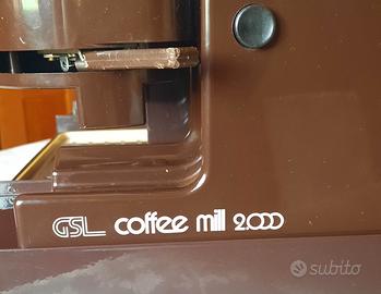 Una macchina per caffè espresso, Espresso 2000 della GSL, del 1983, perfettamente funzionante, usata pochissimo ed in condizioni eccellenti. Completa di base con due cassettini, con misurino, un porta filtro e due filtri, (uno per fare un caffè e uno per farne due). Con beccuccio per generare il vapore, regolabile, serbatoio che può contenere due litri e mezzo di acqua. Un macinacaffè indipendente e rimovibile, (GSL coffee mill 2000), con dosatore, funziona da solo con cavo separato. Ovviamente funzionano a 220 volt e i cavi sono lunghi più di un metro.