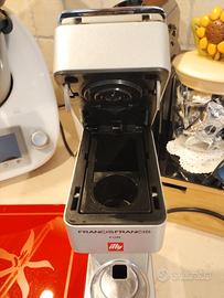 vendo macchina per caffè Illy y1 in buone condizioni, perfettamente funzionante.scrivo buone condizioni a causa del piccolo difetto evidenziato in fotografia che non pregiudica il funzionamento.prodotto interamente in alluminio ed acciaio, può funzionare con capsula iper espresso anche non originali.io personalmente ho utilizzato le BARBARO che includerò gratuitamente nella confezione per effettuare test di prova.resto a disposizione per qualsiasi chiarimento. la macchina è provvista di scaldatazzine perfettamente funzionante ed espulsione autonatica della cialda con contenitore che può contenere sino a 9 cialde scaricate.cmq online potete trovare tutte le caratteristiche tecniche.