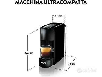 Macchina per caffè Nespresso modello Essenza mini, colore bianco, modello ultra compatto, perfettamente funzionante. Regalo base in plexiglass porta capsule.