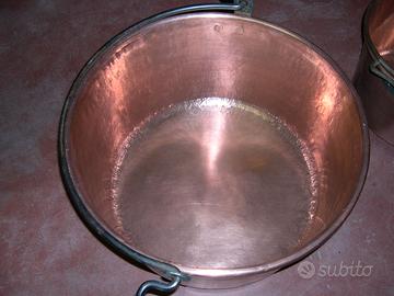 2 paioli rame ( 1 diam. 57 x h 32 peso 10 Kg. ed 1 diam. 42 x h 25 peso 5 Kg.);