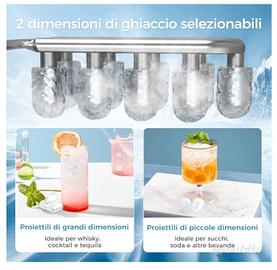 MarchioQEXREED Nome modelloDH-ICM01 Dimensioni del prodotto43,5P x 25l x 33H cm Capacità1,5 Litri Potenza in watt130 watt 【Produzione efficiente di ghiaccio】In soli 6-8 minuti con la macchina ghiaccio, ottieni 9 cubetti freschi a forma di proiettile. Entro 24 ore, produce 26 libbre di ghiaccio (sotto condizioni inferiori a 28°C). Il refrigerante R600a garantisce un rapido raffreddamento con basso consumo energetico e rumore. Il ghiaccio dalla macchina non può essere conservato, quindi rimuovilo tempestivamente. 【Nuovo Aggiornamento del Design】Dotato di una finestra anteriore trasparente e di una luce ambientale integrata, che ti permette di osservare il processo di produzione del ghiaccio in tempo reale anche di notte, offrendoti maggiore tranquillità e divertimento. Il design di drenaggio laterale facilita la pulizia, rendendo la tua vita più rilassata. 【Incontro a diverse esigenze】Scegli tra 2 dimensioni di cubetti di ghiaccio (grande e piccola) in base alle tue preferenze personali per preparare cibi, frullati, bevande fredde, cocktail e sacchetti di ghiaccio di emergenza. Per risultati ottimali, usa cubetti di ghiaccio piccoli quando la temperatura interna è inferiore a 15 ℃ e cubetti di ghiaccio grandi quando la temperatura interna è superiore a 30 ℃. 【Auto-pulizia e Intelligente】La macchina ghiaccio casa si auto-pulisce ed è facile da pulire. Attivando il ciclo di pulizia elimini i depositi di minerali e ottieni ghiaccio fresco e pulito. Il sensore intelligente e il display LED mostrano lo stato in tempo reale. L'indicatore di ghiaccio pieno ti avvisa quando il cestello è pieno e quello di carenza idrica ti avvisa di aggiungere acqua.