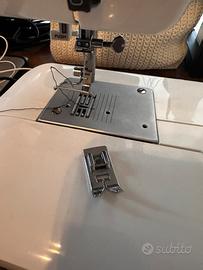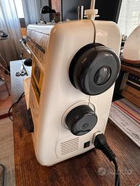 Macchina per cucire portatile usata occasionalmente. Non ha segni di usura. Unica manutenzione necessaria: riattaccare il fermaglio del tessuto alla levetta, che si è allentata (vedi foto).