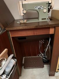 Macchina per cucire elettrica ed a pedale, anni 70/80, perfettamente funzionante, ribaltabile e con mobile contenitore chiudibile, come da fotografie. Presenti accessori vari e libretto istruzioni.