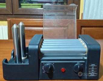 Macchina per hot dog professionale da bar, modello GE-3531, 230 V, 50 Hz, Potenza: 300W, con 5 rulli x cucinare i wurstel, e 2 spiedi per riscaldare i panini nel cuore, con timer e pulsante di sicurezza on-off. Usata pochissimo vendo perfettamente funzionante.