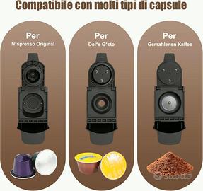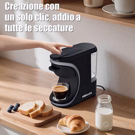 ST-551 Macchina da caffè 3 in 1 per Nespre*so Original/Dol*e Gu*to/Polvere, due quantità d'acqua a scelta, compatta e salvaspazio(Nero) NUOVA MAI USATA LISTINO 100€ Compatibile con capsule Nespresso Original, Dolce Gusto, Mio e caffè macinato (adattatore Mio non incluso, venduto separatamente). 【Personalizzazione】regola il volume dell'acqua per preparare il tuo caffè perfetto. Tieni premuto il pulsante tazza piccola/grande per regolare la quantità d'acqua per ogni dimensione. 【Funzionamento semplice】l'erogazione con un solo tocco e il preriscaldamento di 45 secondi consentono di ottenere una tazza deliziosa in soli 2 minuti. Prepara rapidamente espresso, latte macchiato o cappuccino. 【Ingombro ridotto】questa macchina da caffè a capsule compatta si adatta perfettamente alle cucine o agli uffici, portando il piacere del caffè ovunque ti trovi. 【Funzione standby】dotata di una funzione di standby automatico di 15 minuti per un funzionamento sicuro ed efficiente dal punto di vista energetico.