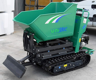 MINIDUMPER CINGOLATO ; MINITRASPORTATORE CASSONE KG.400 DUMPER CARATTERISTICHE DEL MINITRASPORTER CINGOLATO 1- Il minidumper, totalmente oleodinamico, ha la peculiarità di non surriscaldare l'olio perché ha un serbatoio molto voluminoso 2- Portata di 400 Kg in tutte le condizioni estreme di utilizzo, anche in forte pendenza dove le macchine della stessa categoria a trasmissione meccanica hanno diverse difficoltà. 3- SISTEMA DI GUIDA PROFESSIONALE CON LEVA ACCELERATORE, semplice, maneggevole pratico minidumper 4- Nessuna manutenzione sulla trasmissione del minidumper cingolato 5 - Il nuovo SPORTELLO CASSONE è utile per non perdere il materiale per strada, in modo da poter sfruttare a pieno il cassone dumper del minitrasporter cingolato