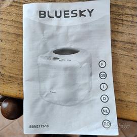Vendo macchina del paneBluesky modello BBM2113-10, usata poco e in ottime condizioni funzionali. Perfetta per chi vuole iniziare a fare il pane in casa, pizze o dolci in modo automatico e senza fatica. Caratteristiche principali: Potenza:610W (ottimo compromesso tra prestazioni e risparmio energetico). Funzioni:Diversi programmi per pane bianco, integrale, francese e impasti per pizza/focaccia. Stato:Pulita, testata e pronta all'uso. Cestello antiaderente ben tenuto. Extra:Includo ilmanuale d'istruzioni cartaceo originale(fondamentale per i tempi di cottura e le ricette predefinite