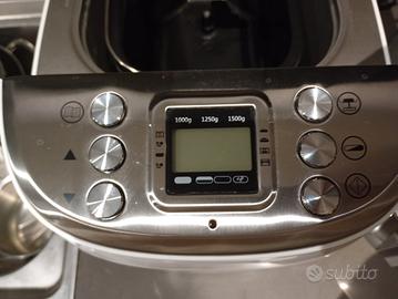 Macchina per il pane con ricettario, impasta e cuoce. Presenta piccoli segni sulle alette che muovono l'impasto.