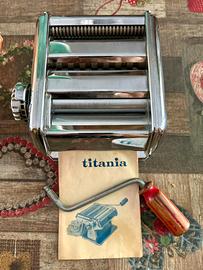 Macchina per Pasta Titania Medius in acciaio cromato perfetta in ottimo stato senza scatola + Motore Pasta Facile AEPI 2500 in ottime condizioni con istruzioni e scatola originale, adatto e compatibile per ogni tipo di macchina per la pasta.