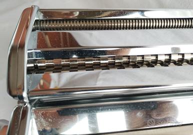 Nelle immagini, un set classico per la preparazione della pasta fatta in casa del marchio Marcato, un'azienda italiana storica e leader nel settore. Ecco i dettagli dei due componenti: 1. Marcato Atlas 180 Questa è la macchina per la pasta manuale, il "cuore" del set. Modello: Si tratta della Atlas 180, una versione con rulli più larghi rispetto alla classica "Atlas 150". I 180 mm di larghezza permettono di stendere sfoglie di pasta più grandi in un unico passaggio. Funzioni: È progettata per preparare tagliolini e fettuccine. Include un regolatore a manopola per scegliere lo spessore della sfoglia (solitamente con 10 posizioni diverse). Materiali: Realizzata in acciaio cromato di alta qualità, con rulli in lega di alluminio anodizzato che non rilasciano metalli pesanti sulla pasta. 2. Marcato Pastadrive Nella seconda scatola c'è il motore elettrico accessorio. Utilità: Questo motore si aggancia lateralmente alla macchina Atlas. Serve a rendere il lavoro molto più veloce e meno faticoso, eliminando la necessità di usare la manovella manuale. Vantaggi: Usando il motore, hai entrambe le mani libere per accompagnare la sfoglia mentre entra ed esce dai rulli, garantendo un risultato più omogeneo. Sicurezza: È un accessorio progettato specificamente per incastrarsi in modo stabile e sicuro sulla struttura della macchina. In sintesi, hai una combinazione professionale: la larghezza della Atlas 180 unita alla potenza del Pastadrive ti permette di produrre grandi quantità di pasta fresca con uno sforzo minimo.