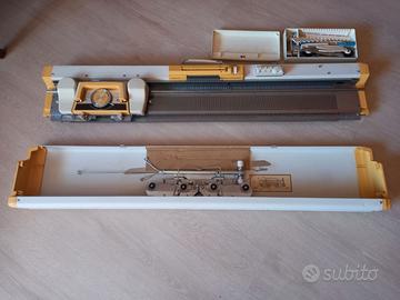 Macchina per maglieria professionale, in ottime condizioni come da foto. La macchina non è in uso da lungo tempo. Completa di accessori. - La custodia presenta leggeri segni di usura - Mancano il libretto delle istruzioni e le schede perforate, entrambi reperibili in rete.