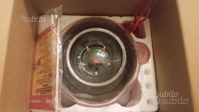 Macchina per pop corn ARIETE Disney 2950. Euro 35,00. Caratteristiche tecniche: Velocità e semplicità si combinano nella macchina per il pop corn. Basta inserire il granoturco e premere il tasto di accensione: in pochi minuti, tanti pop corn sono pronti. Per servirli nessun problema: il coperchio si trasforma in un recipiente . Potenza: 750 W - Colore rosso - Funzioni: on/off - Cool touch - Marchi di conformità: TUV - GS. l.