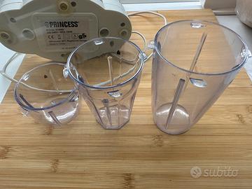 Preparare deliziosi smoothie con la Princess 212062 Smoothie Maker. Grazie al potente motore da 300 Watt potrai frullare frutta, yogurt e ghiaccio per preparare uno smoothie in pochi secondi. Smoothie Maker viene fornita con 3 diverse brocche, che ti permettono di preparare facilmente anche condimenti e pesto. Usata in buone condizioni
