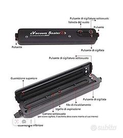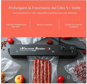 - Confezionatrice Sottovuoto Alimentare Multifunzionale - La macchina sottovuoto automatica può mantenere la freschezza di frutta, noci, carne, dolci e verdure, evitando che gli alimenti si brucino, si modellino e si deteriorino nel congelatore, riduce il deterioramento e lo spreco di cibo. Con la sigillatura sottovuoto creerai anche spazio extra nel tuo frigorifero. Dì addio a frigoriferi e congelatori disordinati e disorganizzati. - Grande Aspirazione & Portatile - La pompa a vuoto -65kPa può facilmente aspirare l'aria e restringere i sacchetti, lunghezza massima di sottovuoto: 28cm. Dopo aver sigillato il vuoto, il tempo di conservazione del cibo può essere esteso di oltre 7 volte. Dimensioni compatte e design leggero per un facile stoccaggio. Non occuperà spazio nella tua cucina ed è facile da riporre, se hai solo bisogno di una macchina sottovuoto portatile. - Sicuro & Durevole - Il guscio per il risparmio alimentare è realizzato in plastica di ingegneria ABS, le macchine per sigillare sono resistenti. Design del sistema di sigillatura sottovuoto completamente automatico, dissipazione del calore multistrato, protezione dal surriscaldamento, sicuro e comodo da usare. La confezione viene fornita con 10 sacchetti sottovuoto, la dimensione del sacchetto sottovuoto è 17x25 cm. - Basso Rumore & Raffreddamento Rapido - Il rumore del vuoto è piccolo, la doppia resistenza è più sicura da usare e la sigillatura è solida e non calda. Il motore non si riscalda facilmente dopo aver lavorato a lungo, il sistema di raffreddamento integrato si raffredda rapidamente. Per rendere più efficiente il lavoro della macchina sottovuoto, si consiglia di attendere alcuni secondi tra due sigillature. - Facile da Usare - Avvio intelligente con un solo tasto, funzionamento semplice, può essere utilizzato sia dagli anziani che dai bambini.Basta premere due pulsanti e tutto è fatto da solo, rimuove automaticamente tutta l'aria e sigilla ermeticamente. Disponibili 2 pz. a 15 euro cad.
