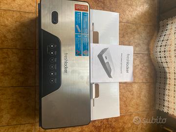 In confezione originale, comprese le istruzioni, dalla quale manca il tubo per il sottovuoto dei contenitori rigidi ed i tappi per bottiglie, tutti accessori eventualmente acquistabili con modica cifra.