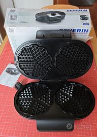 SEVERIN Macchina Per Waffel Duo, Per Realizzare Due Waffel Alla Volta, Con Rivestimento Antiaderente Per Due Waffle Classici A Forma Di Cuore, Potenza 1.200 W, Nero, WA 2106