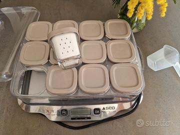 Macchina per yogurt e formaggi Seb Multi Delices, versione con 12 vasetti. Indicata per la preparazione di Yogurt, yogurt da bere, formaggi freschi, creme dessert, dolci soffici. Prezzo trattabile.