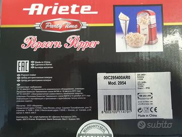 Vendo per inutilizzo (regalo mai usato) fantastica macchina per popcorn Ariete Popcorn Popper, modello con un accattivante design stile retrò (rosso e bianco), è in condizioni pari al nuovo e perfettamente funzionante. Ideale per serate cinema a casa, feste e merende!