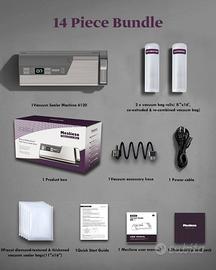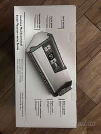 A causa di doppio regalo, vendo questa splendida Macchina per sottovuoto, 95 kPa, 140 W, con una sola mano, doppia striscia di tenuta con taglierina integrata e display conto alla rovescia, 2 rotoli di sacchetti, 5 sacchetti pretagliati