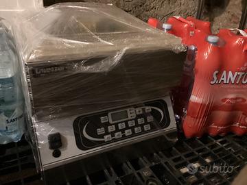 Vendo macchina sottovuoto professionale da banco, marca Lavezzini, modello Lapack. Struttura in acciaio inox, coperchio in plexiglass e pannello comandi digitale. Usata due anni in ottime condizioni, perfettamente funzionante, ideale per uso in laboratori alimentari, gastronomie o piccole produzioni artigianali. Sempre tenuta con cura, pronta all’uso.