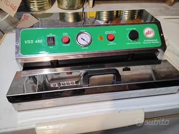 La confezionatrice sottovuoto VSS480S è realizzata in acciaio inox e si caratterizza per la semplicità di utilizzo grazie al pannello comandi analogici.